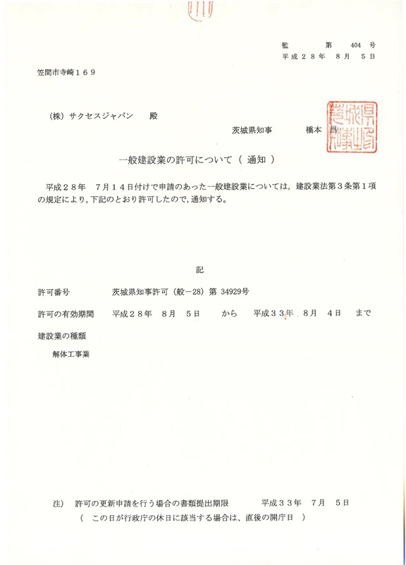 一般建設業許可証